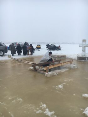 На праздник Крещения Господня, настоятель храма в честь святителя Павла, митрополита Тобольского иерей Сергий Крохин совершил чин Освящения купели в Ларьяке и чин Великого освящения воды в поселке Охтеурье.