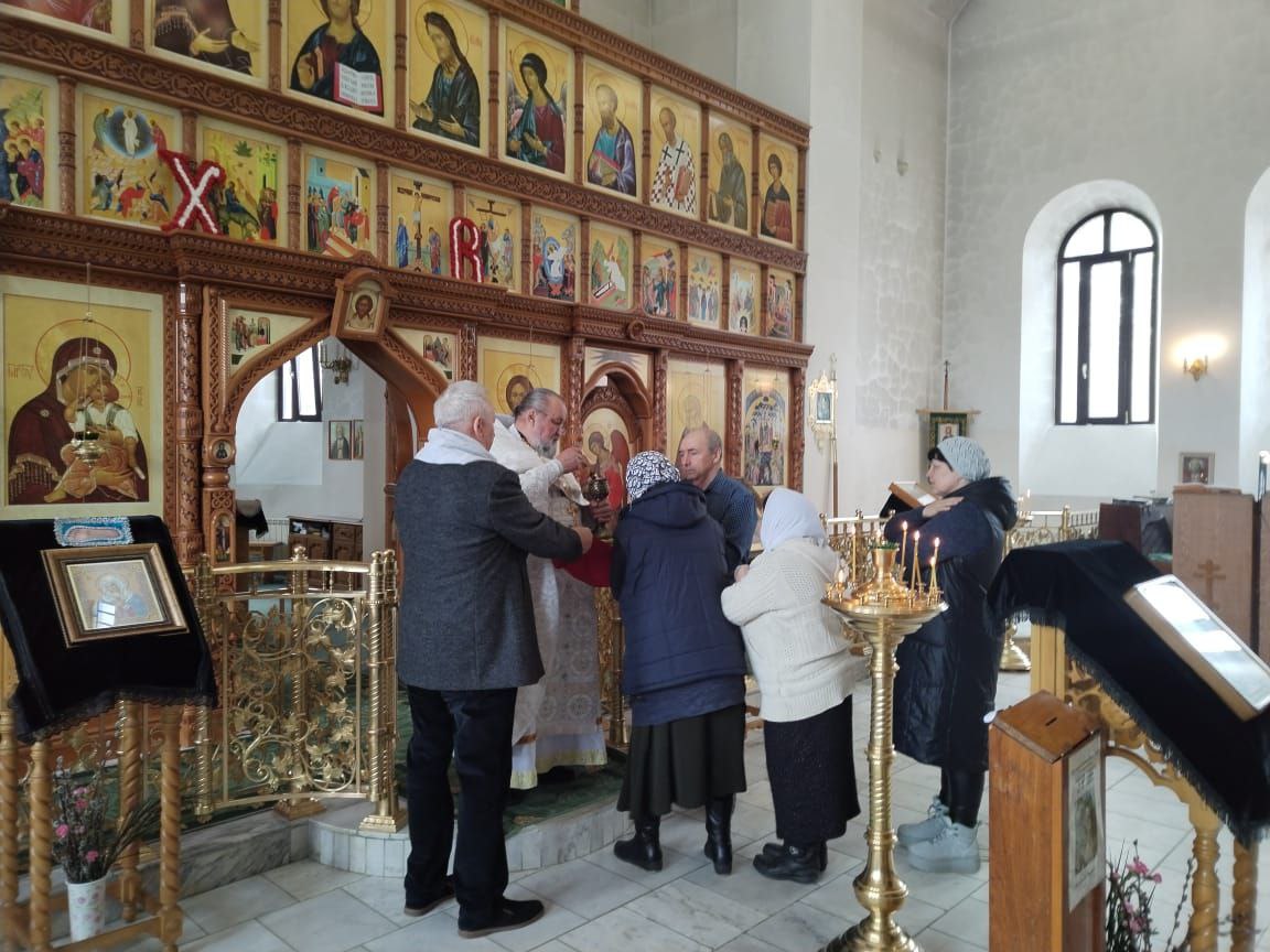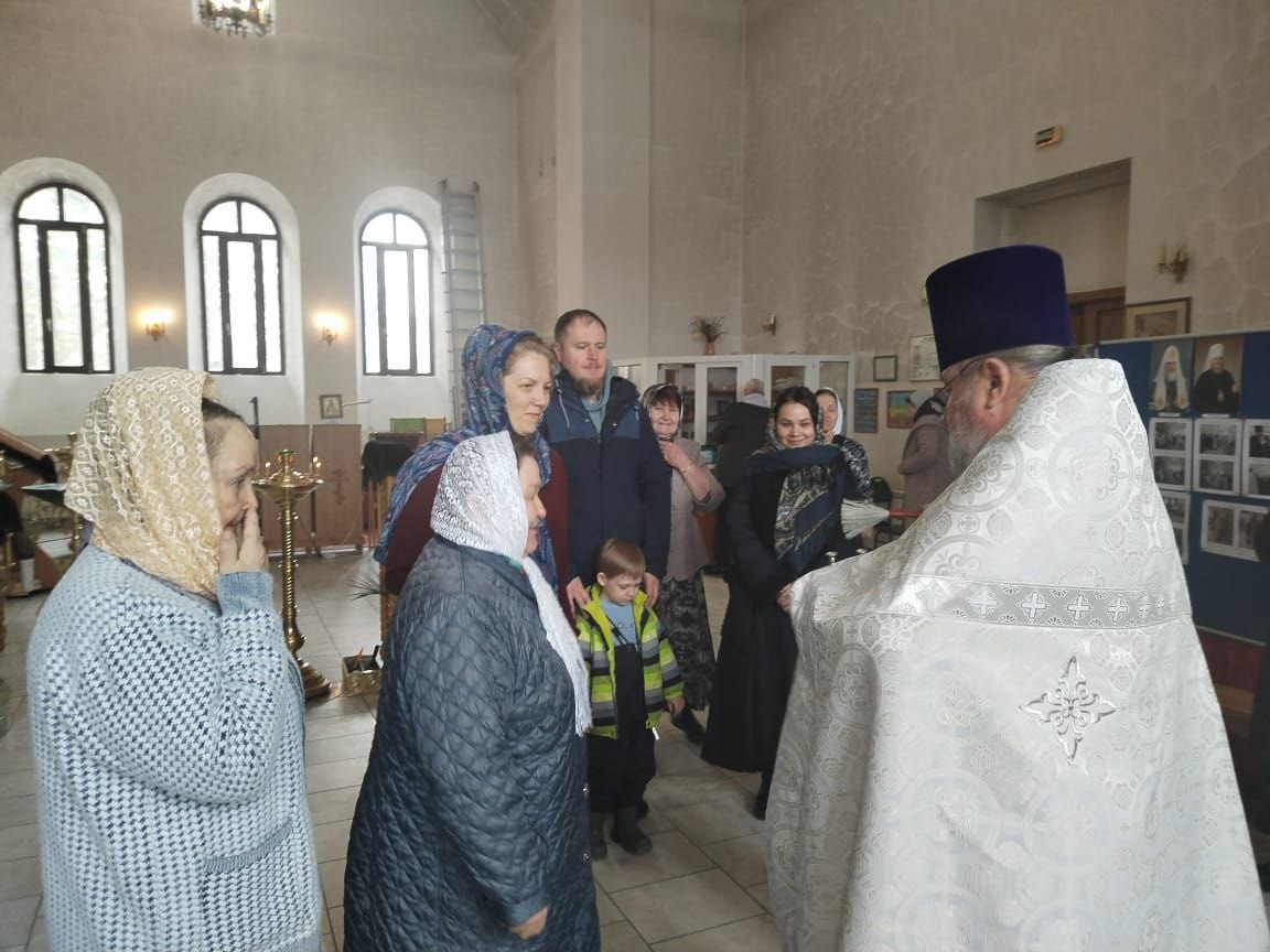12 апреля 2025 года в храме Святого прп. Серафима Саровского прошла божественная литургия, которую совершил настоятель храма Иерей Иоанн Власуков. Прихожане, которые исповедовались накануне, причастились. По окончании литургии было освящение верб.
