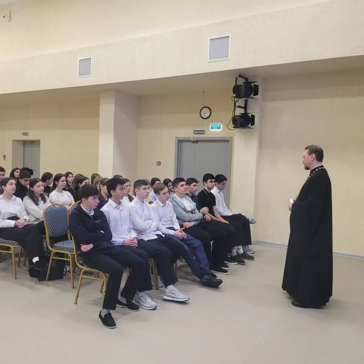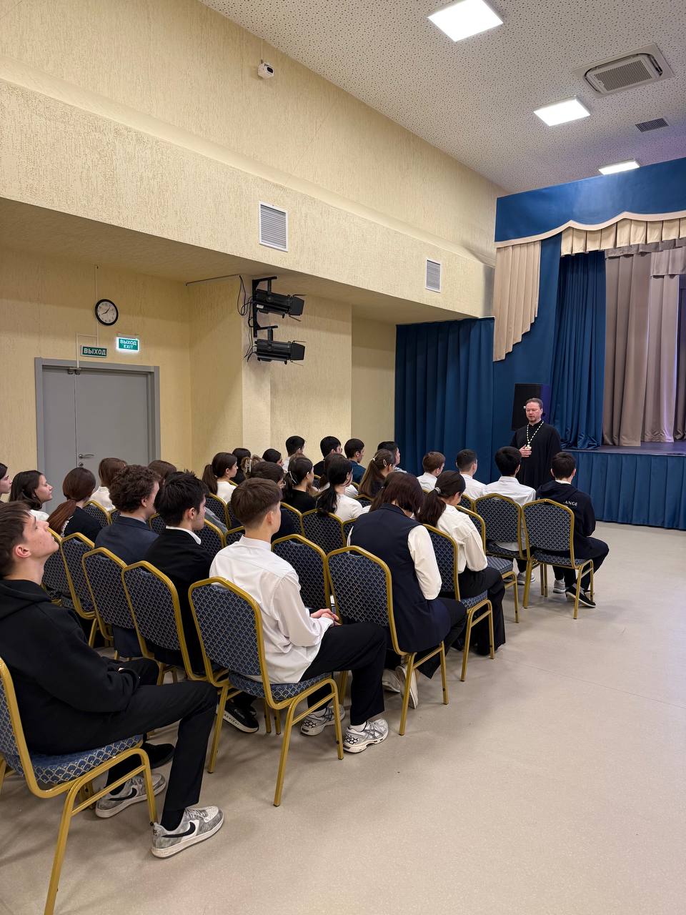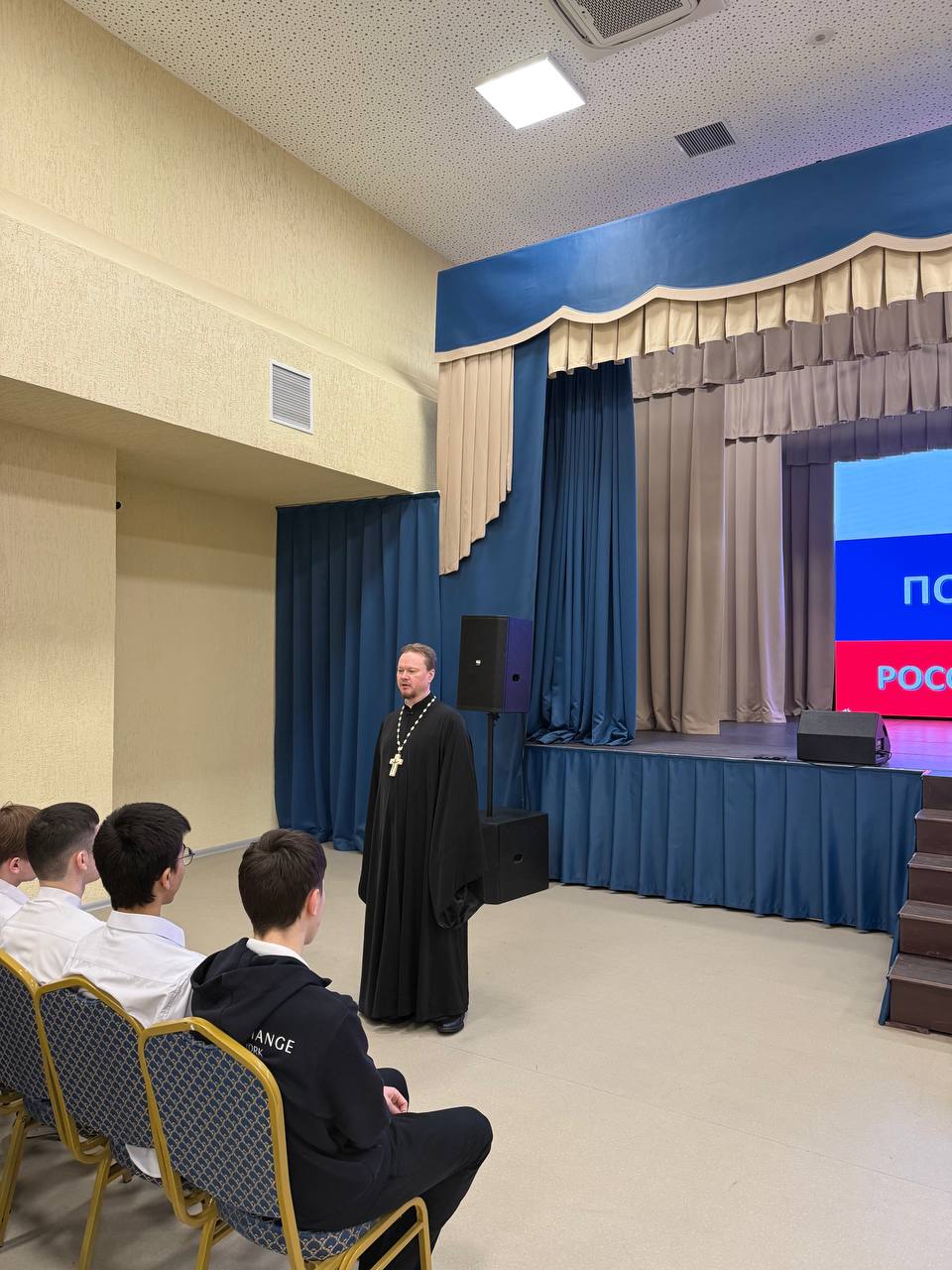 23 марта 2026 года рамках реализации курса «Семьеведение» и цикла внеурочных занятий «Разговоры о важном» состоялась встреча учащихся Солнечной средней общеобразовательной школы №1 с благочинным Сургутского районного благочиния протоиереем Димитрием Глухаревым.
