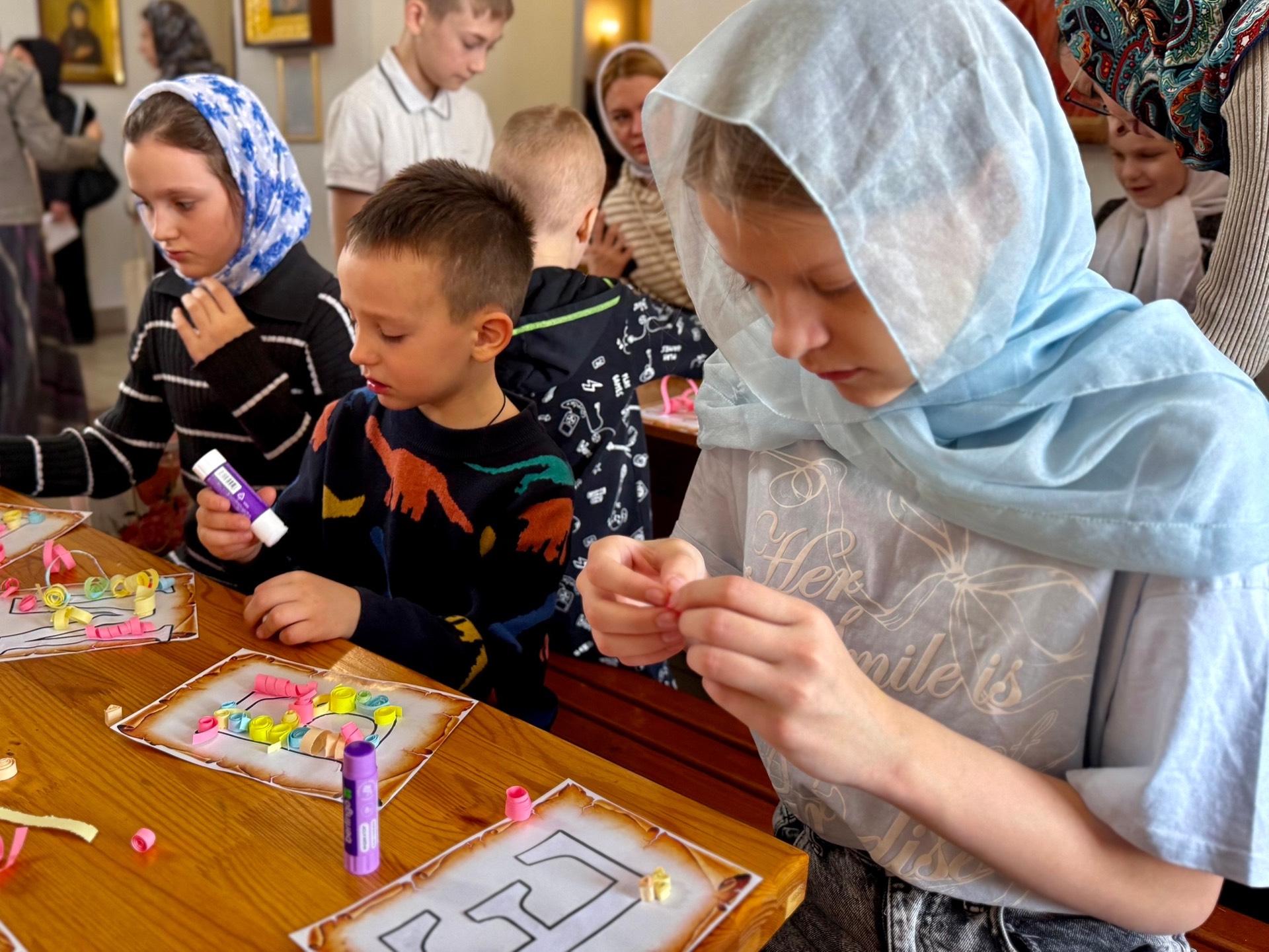 Активисты первичного отделения заранее подготовили заготовки буквиц, нарезали и закрутили цветную бумагу для квиллинга. На занятии они не только с увлечением создавали свои уникальные буквы, но и терпеливо помогали младшим ребятам. Каждый юный участник смог почувствовать себя древним писцом и унес домой неповторимую буквицу — первую букву своего имени, искусно оформленную на стилизованном «пергаменте».