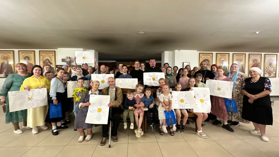 Молодая семья от храма Рождества Христова поучаствовала в квесте по станциям. Задания были направлены на сплочение семьи, за их выполнение участники получали лепестки ромашки. В конце мероприятия у каждой семьи получилась своя ромашка — символ праздника семьи, любви и верности — на лепестках которой участники написали то, на чём держатся их семьи.