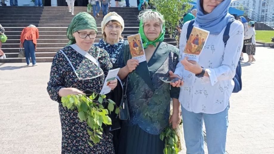 Заранее для раздачи были подготовлены буклеты, объясняющие суть праздника Пресвятой Троицы. Участникам городского Крестного хода и прохожим в доступной форме было рассказано о празднике, ответили на многочисленные вопросы.