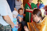 Отец Виктор поздравил всех крестившихся,  на память и для просвещенияподарил книги Святого Евангелия, молитвословы, иконы, а также игрушки для детей, продукты  питания и сладкие  угощения  к празднованию этого дня.
