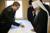 Его Высокопреосвященство сопровождали: руководители компании «Трансгидромеханизация», благочинный Нижневартовского благочиния, протоиерей Шевченко Сергий, настоятель храма, иерей Макаров Владимир, староста храма Е. А. Тушинский.