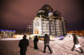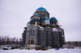 В соборе начинается монтаж элементов крыльца эвакуационных выходов, устройство нижней части купольных, пятискатных и трехскатных крыш, гидроизоляция (биполем) подготовки под металлическую кровлю, установка и сборка декоративных элементов средних главок. Галерея