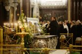 Перед началом заседаний третьего дня Святейший Патриарх Московский и всея Руси Кирилл и участники Архиерейского Собора молились за Божественной литургией в Храме Христа Спасителя, которую совершили ректор Перервинской духовной семинарии, настоятель Патриаршего подворья храмов Николо-Перервинского монастыря в Москве протоиерей Владимир Чувикин и столичное духовенство.