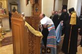 По окончанию Богослужения митрополит Павел поприветствовал игумению Георгию и преподнёс в дар копию иконы Божией Матери » Отрада и Утешение».