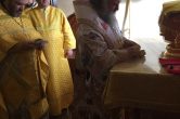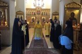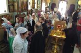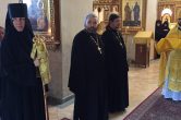 За богослужением молились настоятельница монастыря игуменья Георгия ( Щукина) с сёстрами, паломники Ханты-Манчийской епархии. За богослужением участники паломнической группы причастились Святых Христовых Таин.