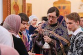 В конце Богослужения Его Высокопреосвященство поблагодарил всех за общие молитвы и поздравил с праздником Воскресения Господа нашего Иисуса Христа. «Мы продолжаем вместе с вами проходить многотрудное поприще Великопостное, – сказал владыка. – Великий пост – это настоящий подвиг, который состоит в том, чтобы, во-первых, познать свои грехи, и во-вторых, чтобы бескомпромиссно бороться с ним даже до кровавого пота.