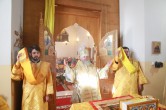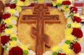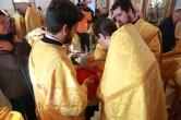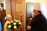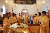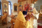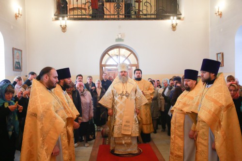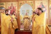 В конце Богослужения Его Высокопреосвященство поблагодарил всех за общие молитвы и поздравил с праздником. «Нет большей радости, чем радость от общей молитвы в храме Божием, особенно за Божественной Литургией, — сказал владыка. — Божественная Литургия – самая главная, самая великая Служба на земле. Когда мы ее совершаем, Небо соединяется с землей, к нам грешным снисходит Сам Господь Иисус Христос, хлеб и вино претворяются в Тело и Кровь Христову, причастники становятся едины со Спасителем. Выше этого ничего быть не может.