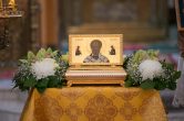 Перед началом Богослужения, по благословению Святейшего Патриарха Московского и всея Руси Кирилла, в храм был доставлен ковчег с частицей мощей святителя Николая, архиепископа Мир Ликийского, чудотворца.