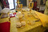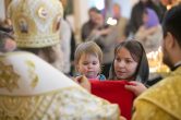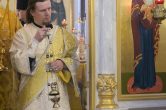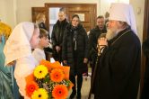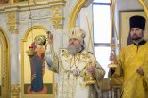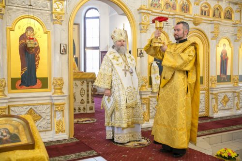 По окончании Богослужения митрополит Павел обратился к собравшимся: «Дорогие отцы, братья и сестры, позвольте всех сердечно поблагодарить за общие молитвы, нет большей славы, сказано, как прославлять всем вместе своего Небесного Творца. Разделяя радость литургического общения вместе с вами в этом святом храме, хочу поделиться радостными вестями. Не так давно мы вернулись с паломнической поездки по Святой Горе Афон и приобрели там великую святыню для города Нижневартовска. Есть святыня Афонская в нашей столице — Ханты-Мансийске, есть и в Сургуте, а Нижневартовсе не было до недавнего времени. Поэтому была заказана икона Божией Матери «Троеручица», в Хиландарском Сербском монастыре она написана монахами этого монастыря, и мы побывали в мастерской, где пишутся иконы.