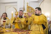 Его Высокопреосвященству сослужили: благочинный Нижневартовского благочиния, протоиерей Шевченко Сергий; заведующий епархиальной канцелярией, иерей Нагорный Сергий; настоятель храма, иерей Гордеев Олег; иерей Сучков Алексий, иерей Макаров Владимир, диакон Кругликов Александр, диакон Фадеев Ростислав.