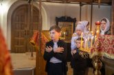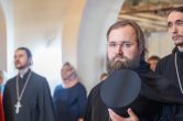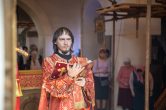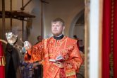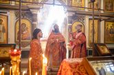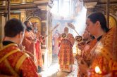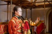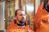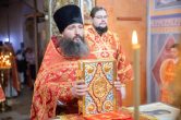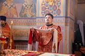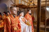 Его Высокопреосвященству сослужили: секретарь Ханты-Мансийской епархии игумен Антоний (Кирпичев), секретарь Югорской епархии иерей Николай Щерба, духовенство собора. Диаконский чин возглавил Александр Дидковский.