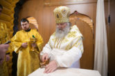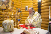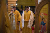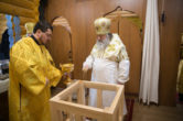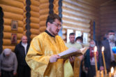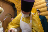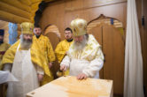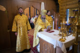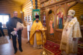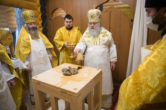 Многие святые отцы говорят о том, что Небо с Землёй соединяется, соединяется Божественное и человеческое. Бог снисходит в дом, который мы сегодня освятили, где особым образом присутствует Дух Святой, где Божественная благодать призывается, и претворяются Тело и Кровь Христовы. И каждый желающий соединяется с Телом и Кровью Господа Нашего Иисуса Христа, нашего Спасителя. Преподобные и богомудрые отцы говорят, что жизнь христианина правильно устроена, если она устроена вокруг Божественной литургии. Центром жизни должна быть жизнь человека с Богом.Остальное- лишь приложение для этой жизни.