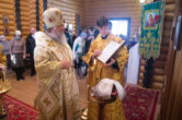 Его Высокопреосвященству сослужили: благочинный Нефтеюганского благочиния протоиерей Николай Матвийчук, секретарь управляющего епархией игумен Антоний (Кирпичев), настоятель храма иерей Алексей Осипов. Диаконский чин возглавил диакон Даниил Матвеев