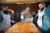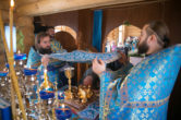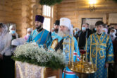 Его Высокопреосвященству сослужили: секретарь управляющего епархией, иеромонах Антоний (Кирпичев); настоятель храма, иерей Андрей Венза; диакон Даниил Матвеев.