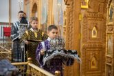 Его Высокопреосвященству сослужили: благочинный Нижневартовского районного благочиния протоиерей Сергий Наздеркин, благочинный Нижневартовского городского благочиния протоиерей Сергий Шевченко, секретарь Ханты-Мансийской епархии игумен Антоний (Кирпичев), настоятель храма иерей Георгий Болотов. Диаконский чин возглавил диакон Матвеев Даниил.