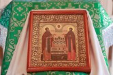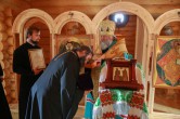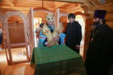 По завершении освящения Его Высокопреосвященство сердечно поздравил всех с освящением храма-часовни, выразил надежду, что милостью Божией здесь затеплиться постоянная молитва, а само это место станет излюбленным для всех брачующихся, для молодежи, поблагодарил строителей и благотворителей, преподнес в дар новоосвященному храму на молитвенную память икону святых Петра и Февронии, а также архиерейскую грамоту во свидетельство о состоявшемся освящении.