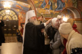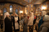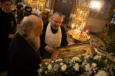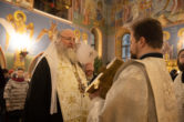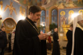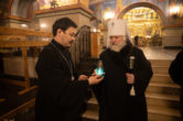 Его Высокопреосвященству сослужили: благочинный Сургутского городского благочиния протоиерей Антоний Исаков, секретарь Ханты-Мансийской епархии игумен Антоний (Кирпичев), духовенство храма