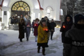 По окончании богослужения на территории храма, возле памятника «Нерожденным детям», прихожанами, сотрудниками и волонтерами центра поддержки материнства «Моя радость» были зажжены свечи памяти, надежды и покаяния.