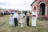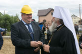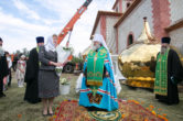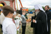 После совершения чина освящения митрополит Павел обратился к собравшимся: «Всех вас, мои дорогие, поздравляю с праздником! Действительно, когда мы освящаем крест и купол то вид храма становится в некоей степени завершенным и иногда мы говорим, что до этого момента мы храм поднимали вверх, а сейчас пойдет отбратный процесс — работы по убранству храма будут распределяться сверху вниз, от купола до полов. Я хотел бы поздравить всех с этим знаменательным, особым событием, потому что это наша история, которую мы пишем. Возможно мы не даем себе отчет, насколько это важно, пройдут годы, мы уйдем, поколения сменятся, но в летописи будет запись, кем и когда был построен сей храм. Вложены силы и возможности тех неравнодушных людей, которые поставили это богатое духовное наследие для будущих поколений. Дай Бог, чтобы все жители этого поселения помнили, что храм Божий — это небо на земле, где мы общаемся с Богом и соединяемся с ним, особенно в его святых Таинствах. Нет более важного места на земле, где человек может побеседовать с Богом, кроме Божьего храма. Хотел бы сегодня особо поблагодарить наших строителей, которые в сложное время нашли возможности помочь в строительстве этого святого храма, пожелать всем крепости сил, помощи Божией в ваших делах, чтобы не оскудевала ваша рука и Господь сторицею воздавал за благие дела, которые останутся в веках. Храни всех Господь, с праздником!»