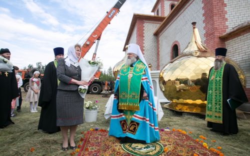 Митрополит Ханты-Мансийский и Сургутский Павел совершил освящение куполов и крестов строящего храма в честь святого равноапостольного князя Владимира с.п. Сингапай Нефтеюганского района