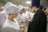 За чином освящения молились: главный врач Юлдашев Олег Русланджанович, сотрудники учреждения.