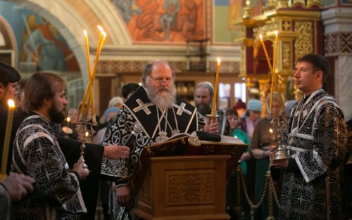 Его Высокопреосвященству сослужило духовенство собора.