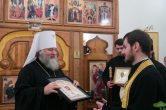 Его Высокопреосвященству сослужили: благочинный Нижневартовского благочиния протоиерей Шевченко Сергий; заведующий епархиальной канцелярией, иерей Нагорный Сергий; настоятель храма, иерей Лисин Владимир, иеромонах Денисенко Иннокентий, диакон Власкин Александр.
