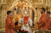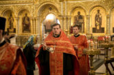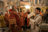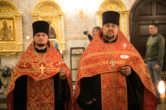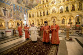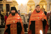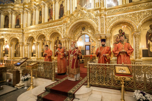 Его Высокопреосвященству сослужили: благочинный Сургутского районного благочиния, настоятель храма, протоиерей Владислав Бронников; секретарь управляющего епархией игумен Антоний (Кирпичев), духовенство храма. Диаконский чин возглавил диакон Даниил Матвеев.