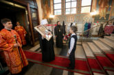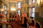 Очень рад помолиться вместе с вами в этом святом храме, и с нами сегодня, как чудо Божие, частицею своих мощей, присутствуют святые Вера, Надежда, Любовь и матерь их София. Бог так устроил, что у нас есть их святые мощи и мы привезли их в город Сургут, в этот храм, а завтра они будут перевезены в храм Веры Надежды, Любови и матери их Софии, где будут находиться до 1 ноября.