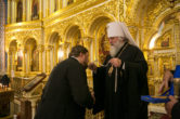 В канун для рождения митрополит Павел вручил настоятелю храма протоиерею Вячеславу Бронникову наперсный крест, пожелав крепости сил в дальнейшем служении.