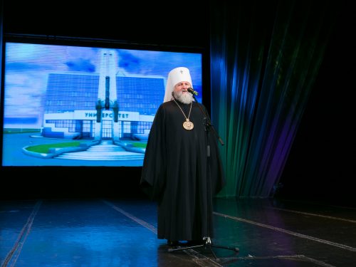 1 сентября 2017 года митрополит Ханты-Мансийский и Сургутский Павел принял участие в торжественном собрании профессорско-преподавательского состава в театре СурГУ.