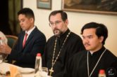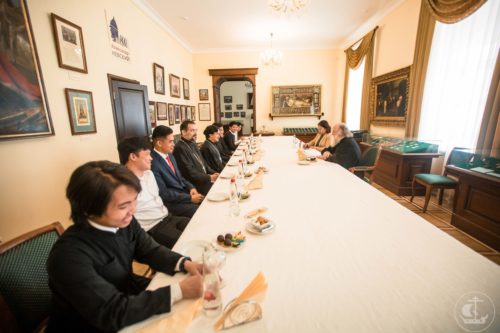 Во встрече приняли участие:третий секретарь и вице-консул Посольства Республики Филиппины в РФ госпожа Кэтрин Флорес Алпай, декан факультета иностранных студентов Санкт-Петербургской духовной академии протоиерей Димитрий Сизоненко.