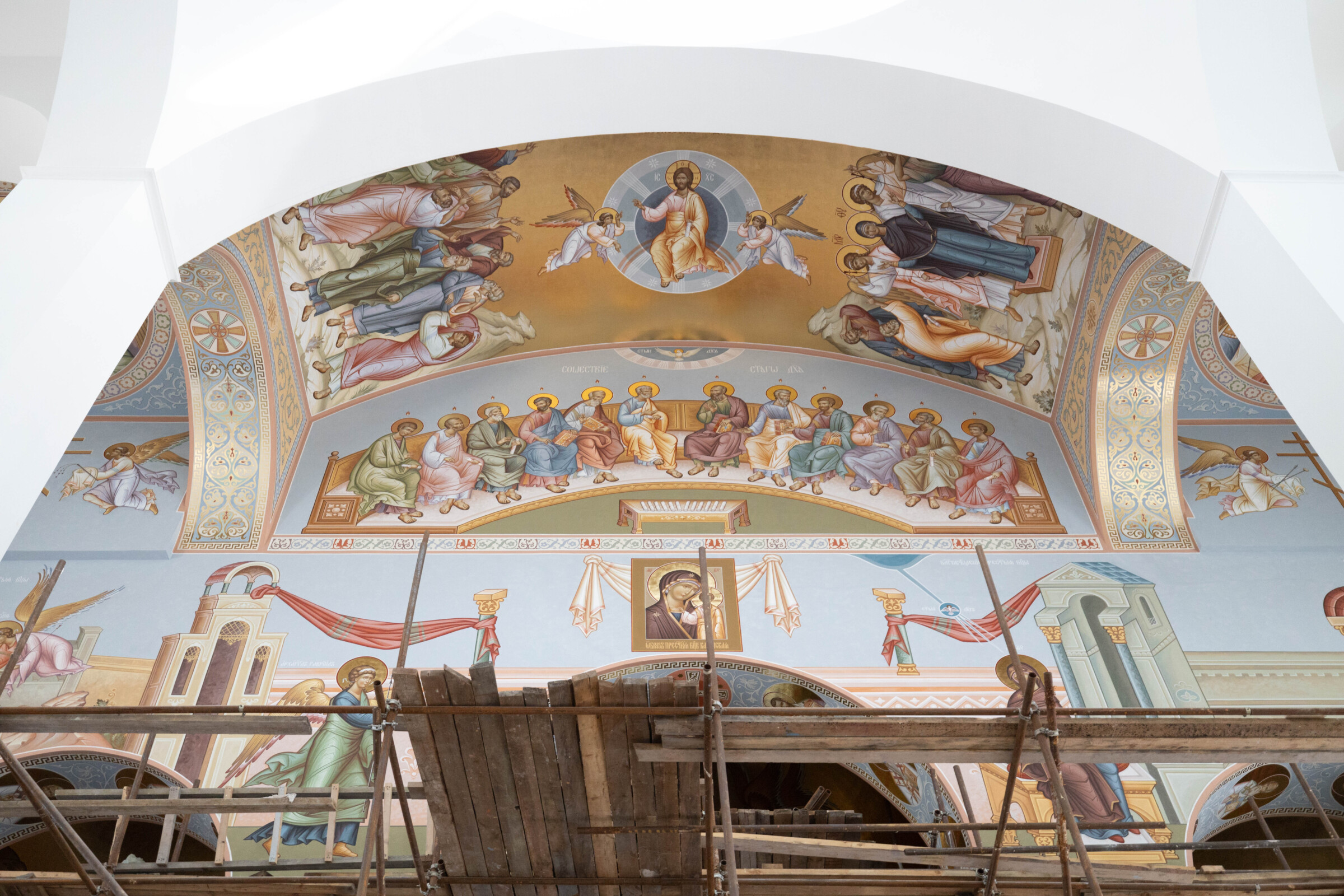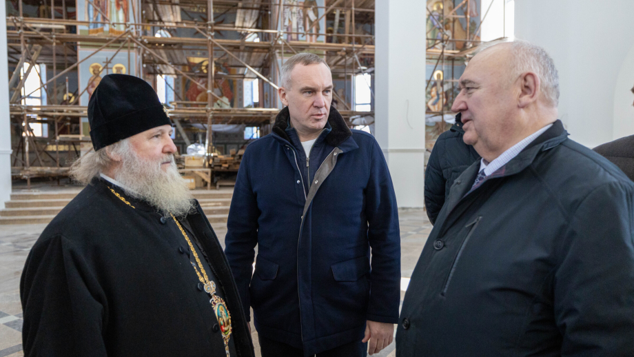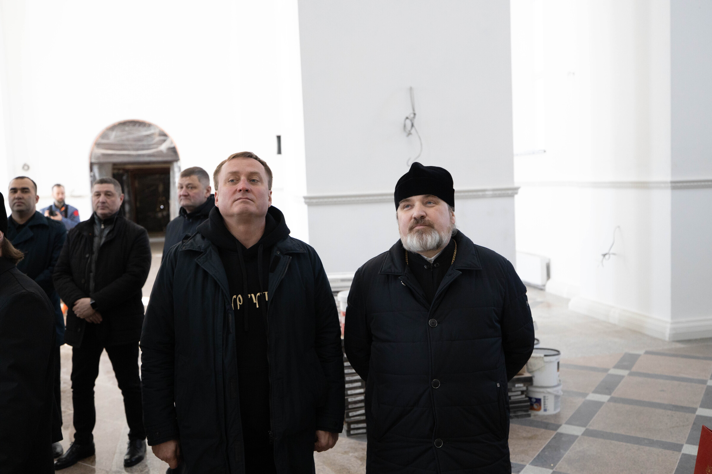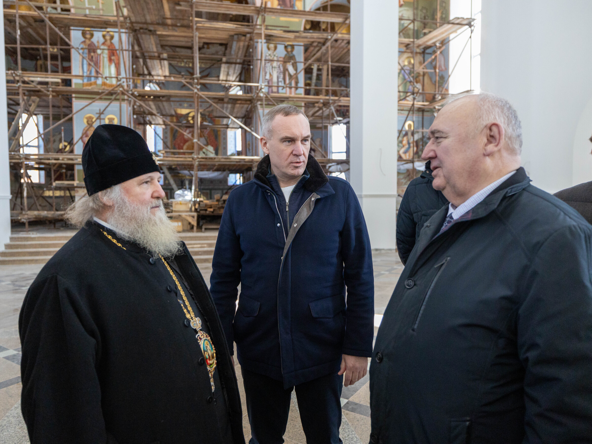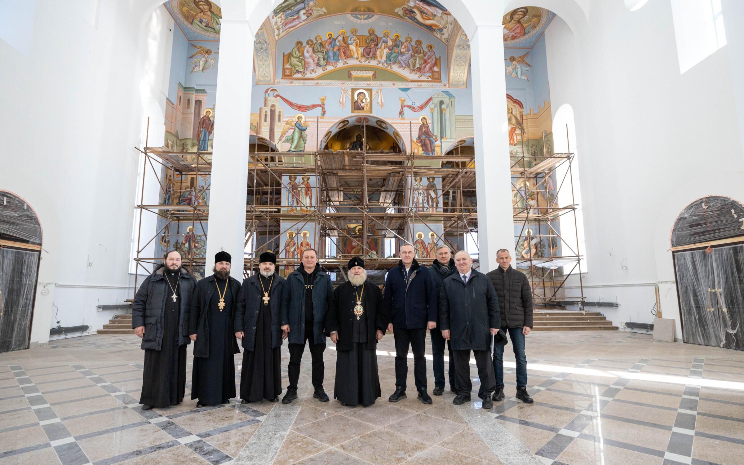 Глава Ханты-Мансийского автономного округа и Глава митрополии ознакомились с ходом строительных работ по внешней и внутренней отделке храма, благоустройству храмовой территории, росписи алтарной части храма.