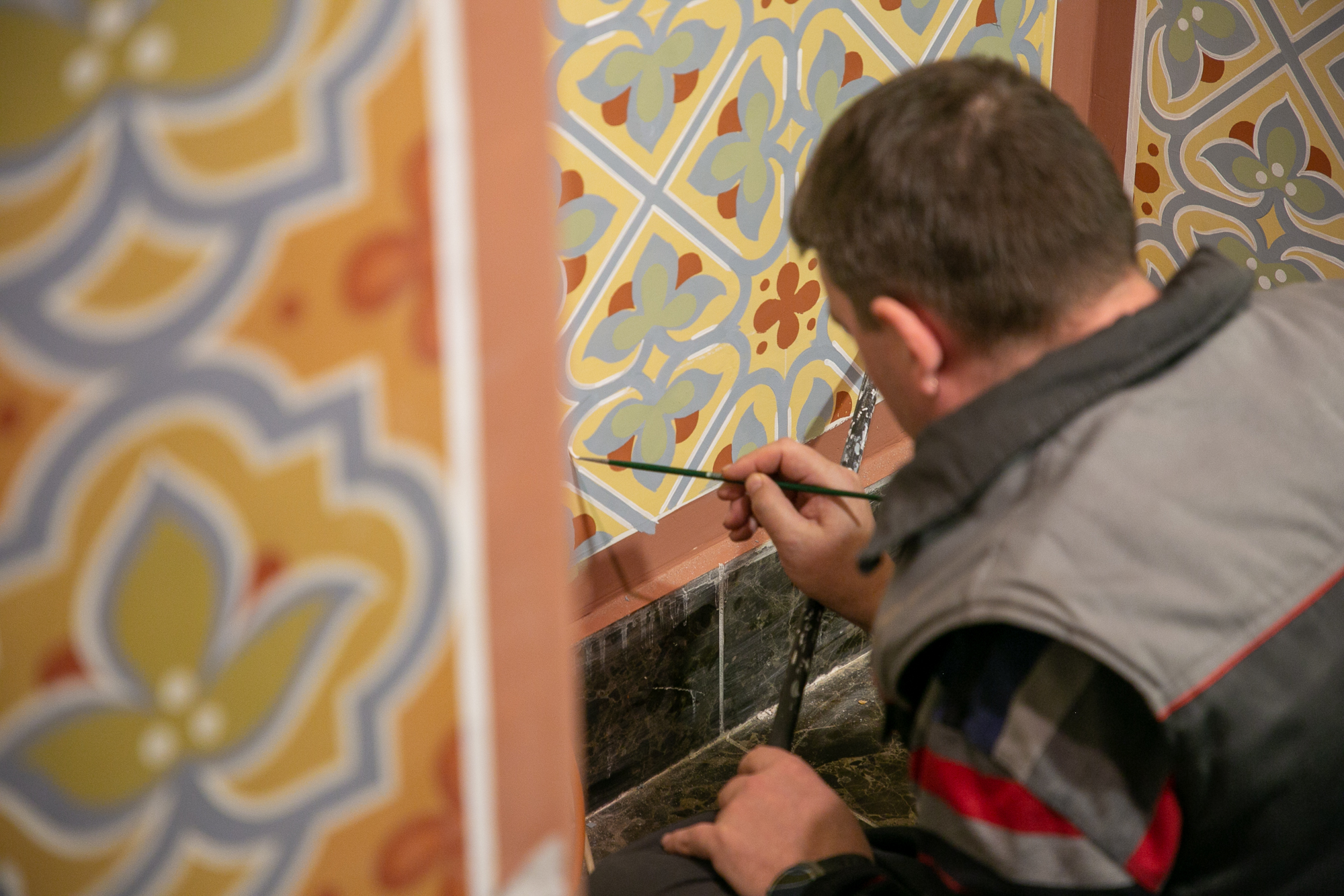Работы выполняют Томские художники-иконописцы, которые уже потрудились над росписью Воскресенского кафедрального собора в Ханты-Мансийске, храма святой мученицы Татианы в Когалыме, Свято Троицкого кафедрального собора и Георгиевского храма города Сургута.