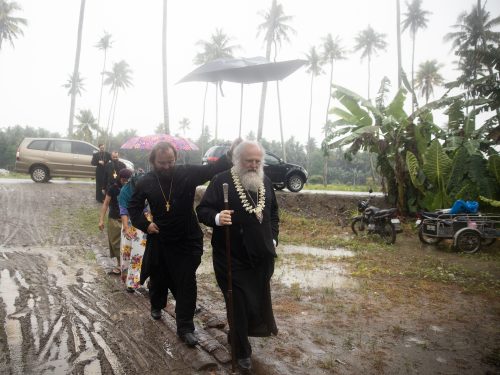 «Дорогой отец настоятель, дорогие отцы, братья и сестры, я очень рад посетить ваш храм, я помню, 3 года назад мы с вами здесь тоже молились вместе. Время пандемии прервало наше молитвенное общение, поэтому 3 года спустя мы снова встретились с вами здесь и вознесли молитву ко Господу, и конечно же небесному покровителю этого храма. Я надеюсь, что милость и помощь Божия будет содействовать и сопутствовать нам почаще встречаться и прославлять своего Небесного Творца. Я хотел бы поздравить отца Алексия с принятием священнического сана, и конечно же, хотел поздравить всех вас с духовным приобретением своего священнослужителя здесь, в этом храме, который будет постоянно служить Божественные службы. Конечно, ему предстоит ещё пройти сорокоуст, специальную практику, поучиться правильно совершать эти богослужения и потом уже самостоятельно приступить к своему служению здесь. Конечно, сейчас нужно всем усердно молиться, чтобы Господь всё благословил и устроил, чтобы и храм преобразился, и община окрепла и приумножилось. Самое главное, что мы идём по правильному, спасительному пути за Господом Нашим Иисусом Христом. Наша кафолическая православная церковь неизменно оставалась от её учреждения, от нашего Господа и по сей день. Я очень рад тому, что сегодня утверждается истинная вера и здесь, на этой Филиппинской земле, и в вашем посёлке. Господь хочет спастись всем и конечно же, указывает свой спасительный, правильный путь, который ведёт нас к Царствию Небесному. И нам нужно только преуспеть в этом, потрудиться ради нашего спасения, ибо Царство Небесное берётся трудом и усилиями, молитвой. Помоги нам, Господи в этом преуспеть! Я ещё раз благодарю вас за общие молитвы и радуюсь вместе с вами нашей встрече!»