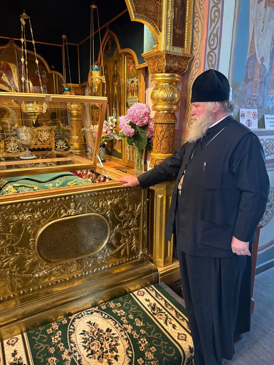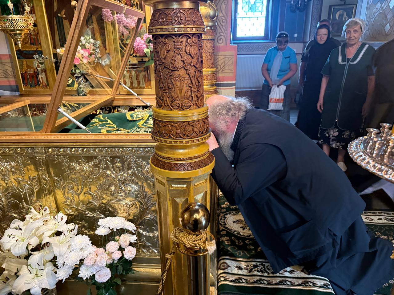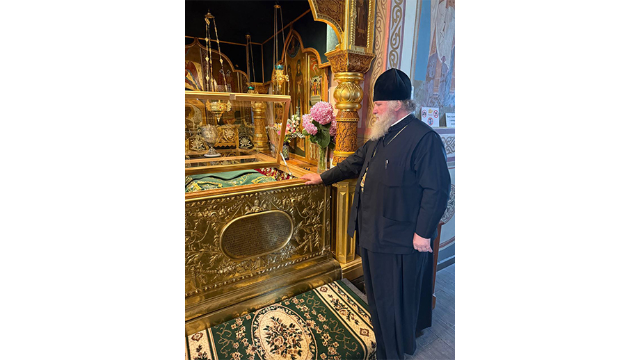 В обители митрополита Павла встречала настоятельница монастыря игумения Арсения (Москокова). Владыка совершил молитву в Троицком соборе обители и поклонился мощам благоверных князей Петра и Февронии Муромских.
