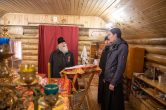 Владыку сопровождали секретарь Югорской епархии иерей Николай Щерба и настоятель Богоявленского храма г. Югорска иерей Богдан Черныш.