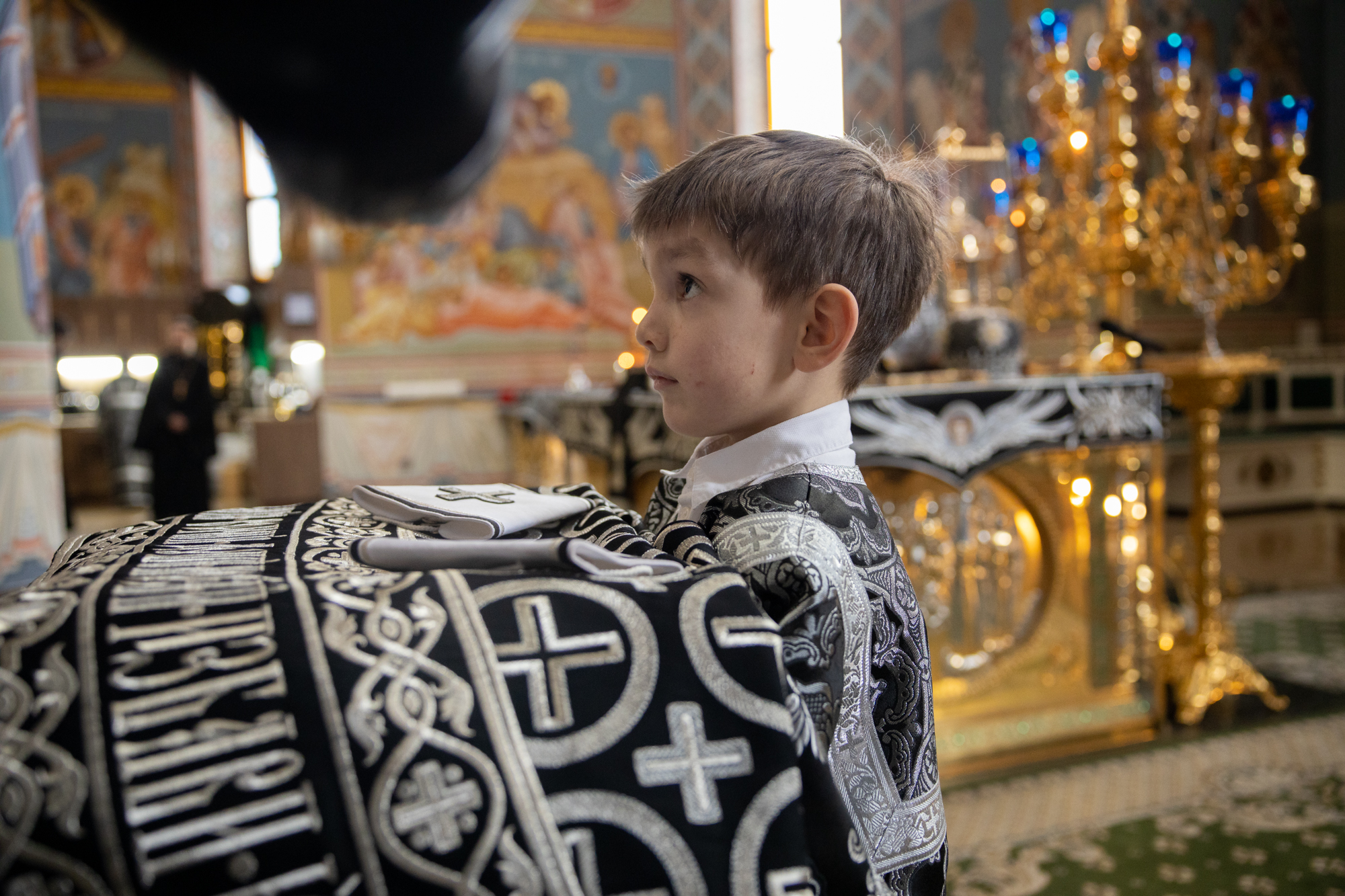 На мирной и сугубой ектениях были вознесены молитвы о Российском воинстве, на заупокойной ектении Архипастырь вознес сугубые молитвы об упокоении Предстоятеля Грузинской Православной Церкви Святейшего и Блаженнейшего Католикоса-Патриарха всея Грузии Илии II.