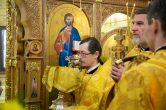 Его высокопреосвященству сослужили: благочинный Нижневартовского благочиния протоиерей Сергий Шевченко, секретарь Ханты-Мансийской епархии игумен Антоний (Кирпичев), настоятель храма протоиерей Сергий Бандурин, иерей Владимир Лисин. Диаконский чин возглавил диакон Александр Кругликов.