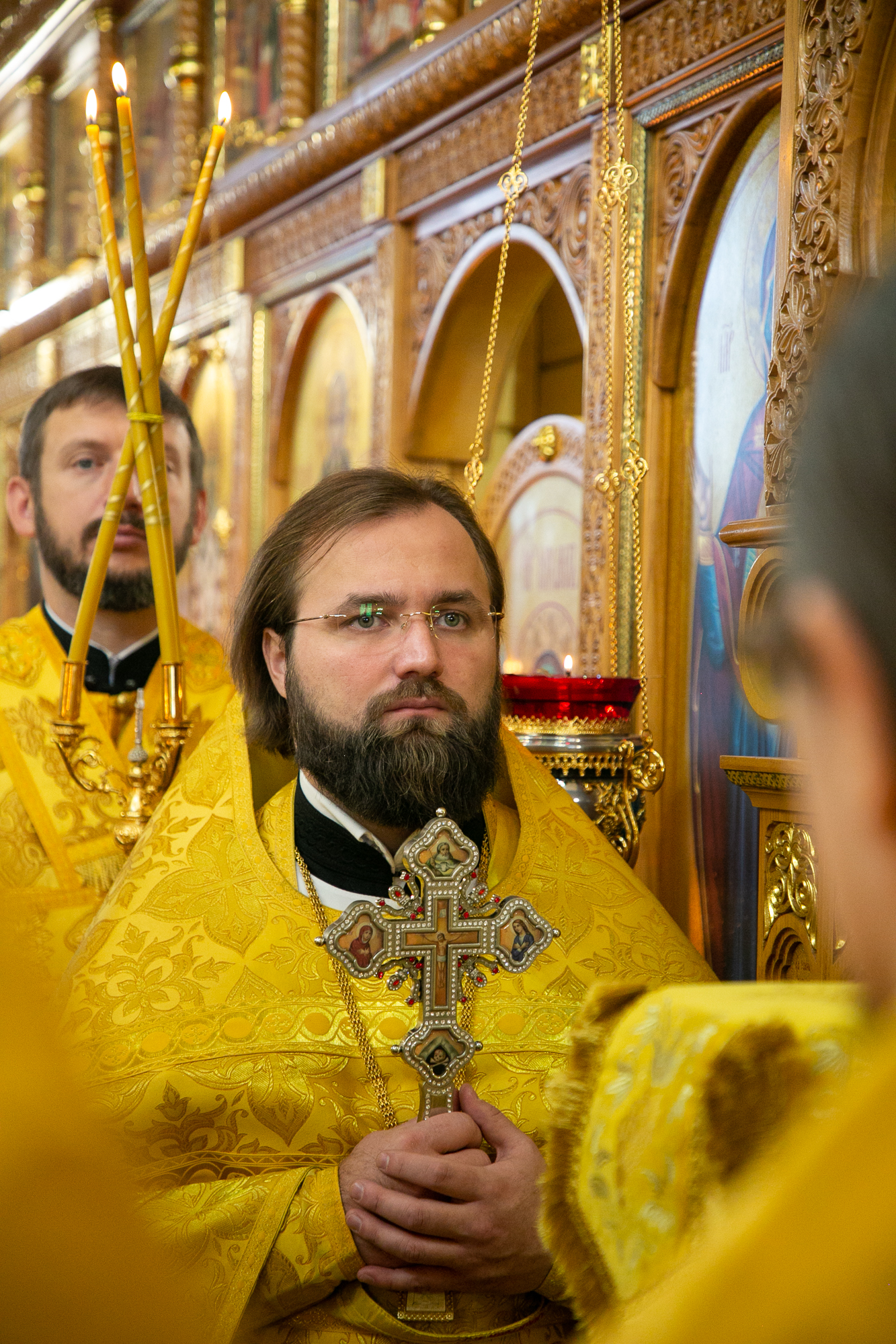 «Дорогие отцы, братья и сёстры, позвольте всех поздравить с праздником принесения мощей великого благоверного князя Александра Невского! Это величайшее событие для нашей епархии, для нашего города и конечно же, для нашего храма, который посвящён этому угоднику Божьему, мечом и крестом защищавшего наше Отечество и нашу веру.