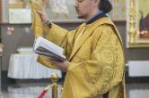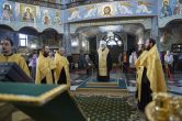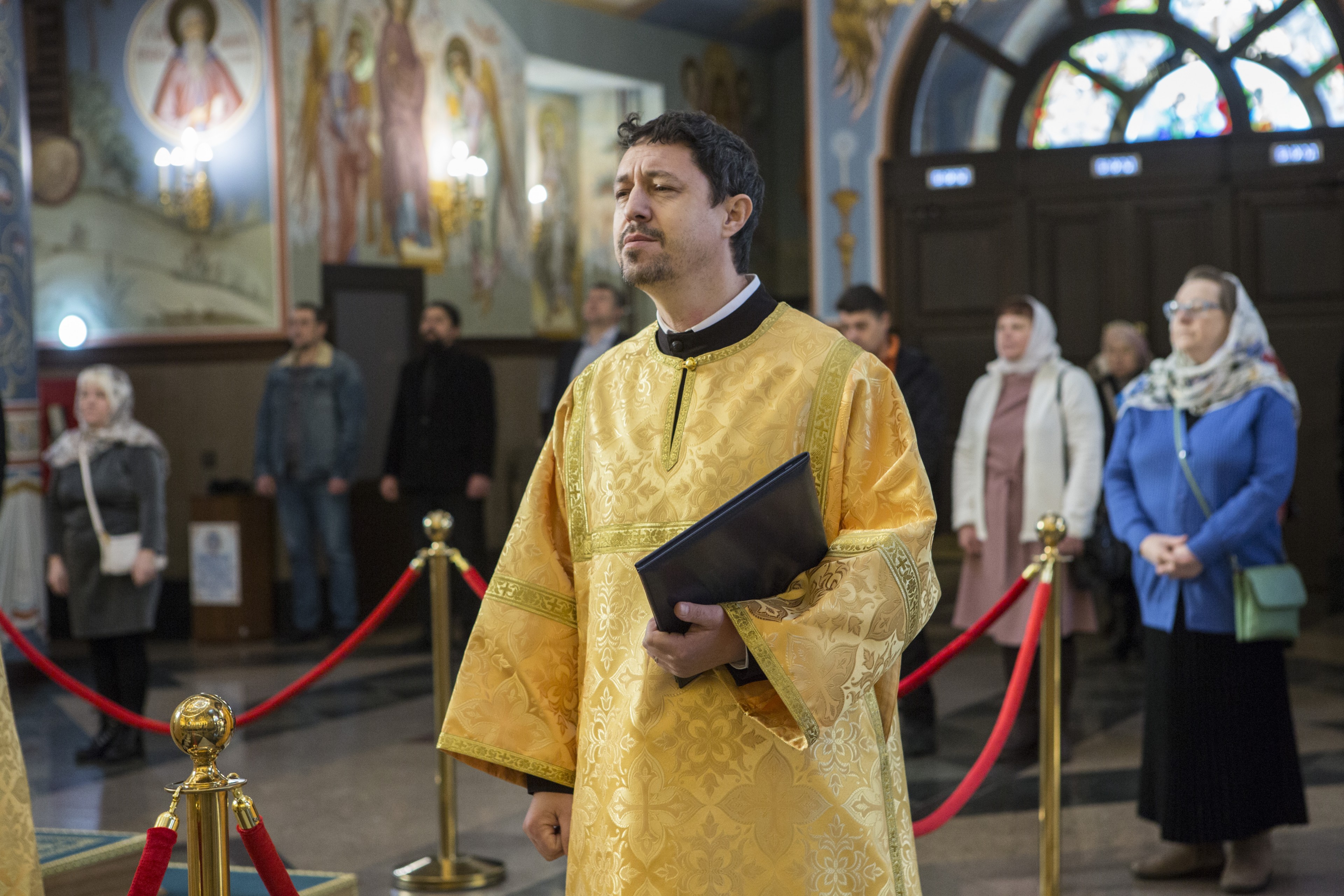 Его Высокопреосвященству сослужили: благочинный Сургутского городского благочиния протоиерей Антоний Исаков, секретарь Ханты-Мансийской епархии игумен Антоний (Кирпичев), иерей Андрей Новичков, иерей Павел Кравцов, диакон Артемий Матюхин.