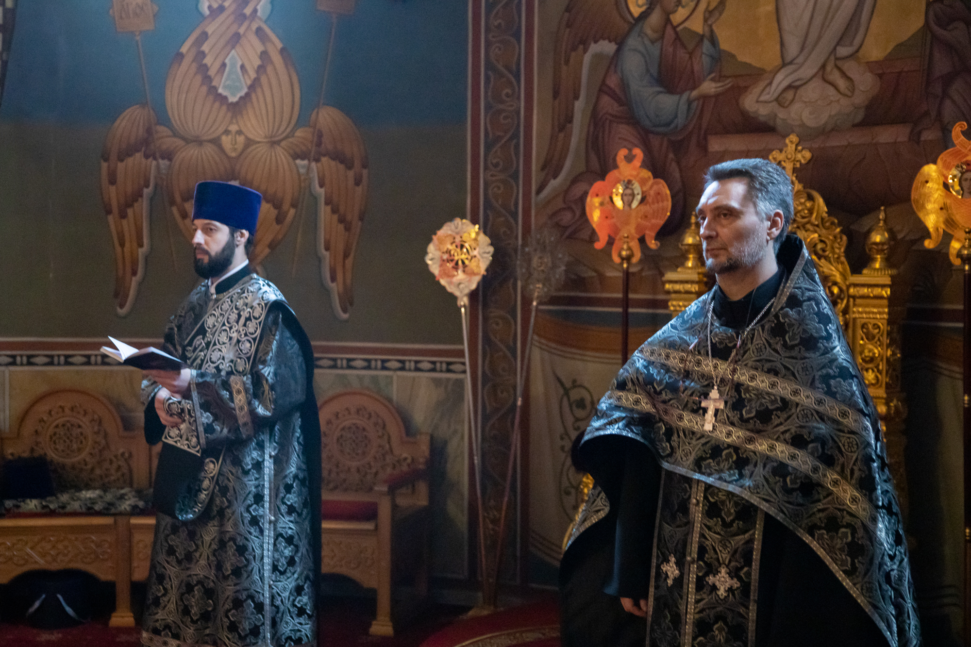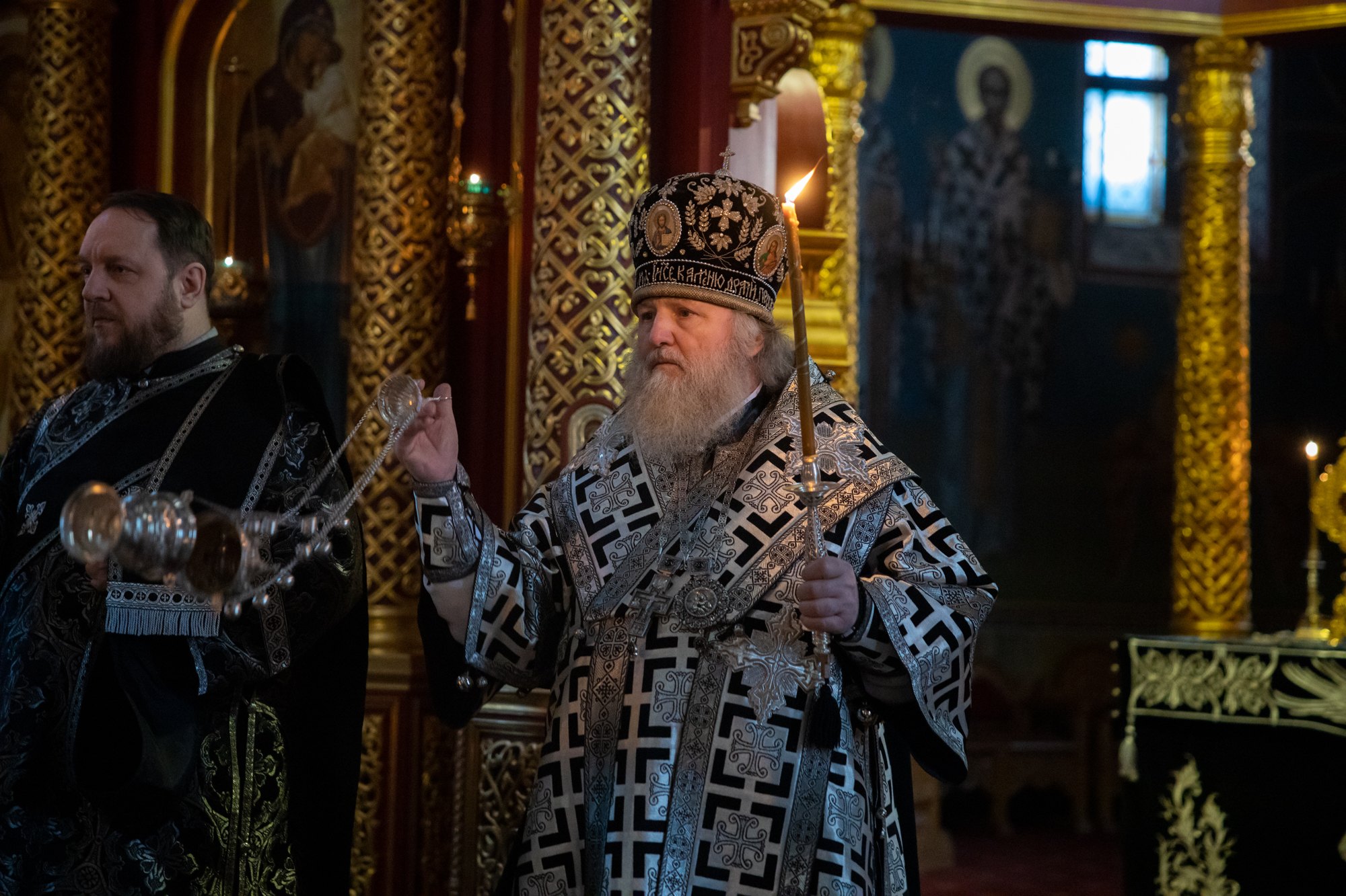 Его Высокопреосвященству сослужили: благочинный Ханты-Мансийского благочиния иерей Димитрий Губанищев, духовенство собора.