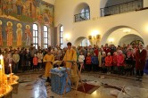 В воскресный день 30 августа вечером в храме в честь великомученика Георгия Победоносца состоялся молебен на начало учебного года. Множество детей с родителями нашли время, чтобы прийти на это богослужение и таким образом получить Божие благословение на предстоящий учебный год.