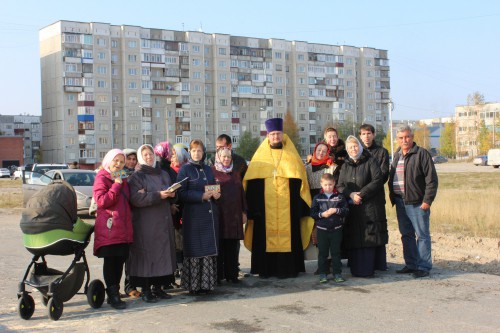 Молебен перед началом доброго дела, за которым молились строители, жители 13А микрорайона, прихожане храмов г. Сургута, совершил иерей Вячеслав Макарцов.