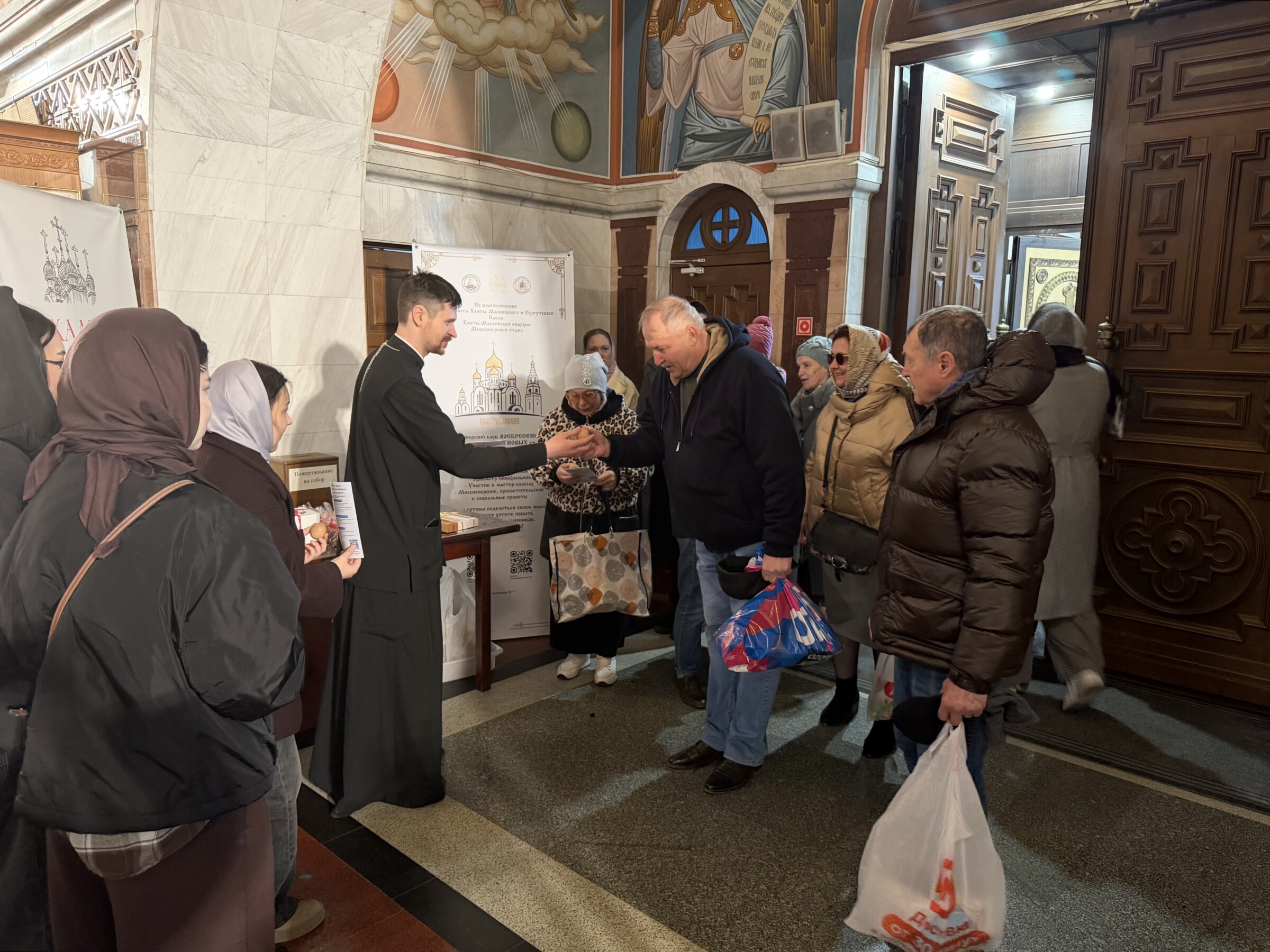 11 апреля 2026 г. в Великую Субботу, по благословению митрополита Ханты-Мансийского и Сургутского Павла на территории кафедрального собора Воскресения Христова г. Ханты-Мансийска миссионерским отделом Ханты-Мансийской епархии была организована пасхальная акция, разработаная @club152423009 (Синодальным миссионерским отделом. )