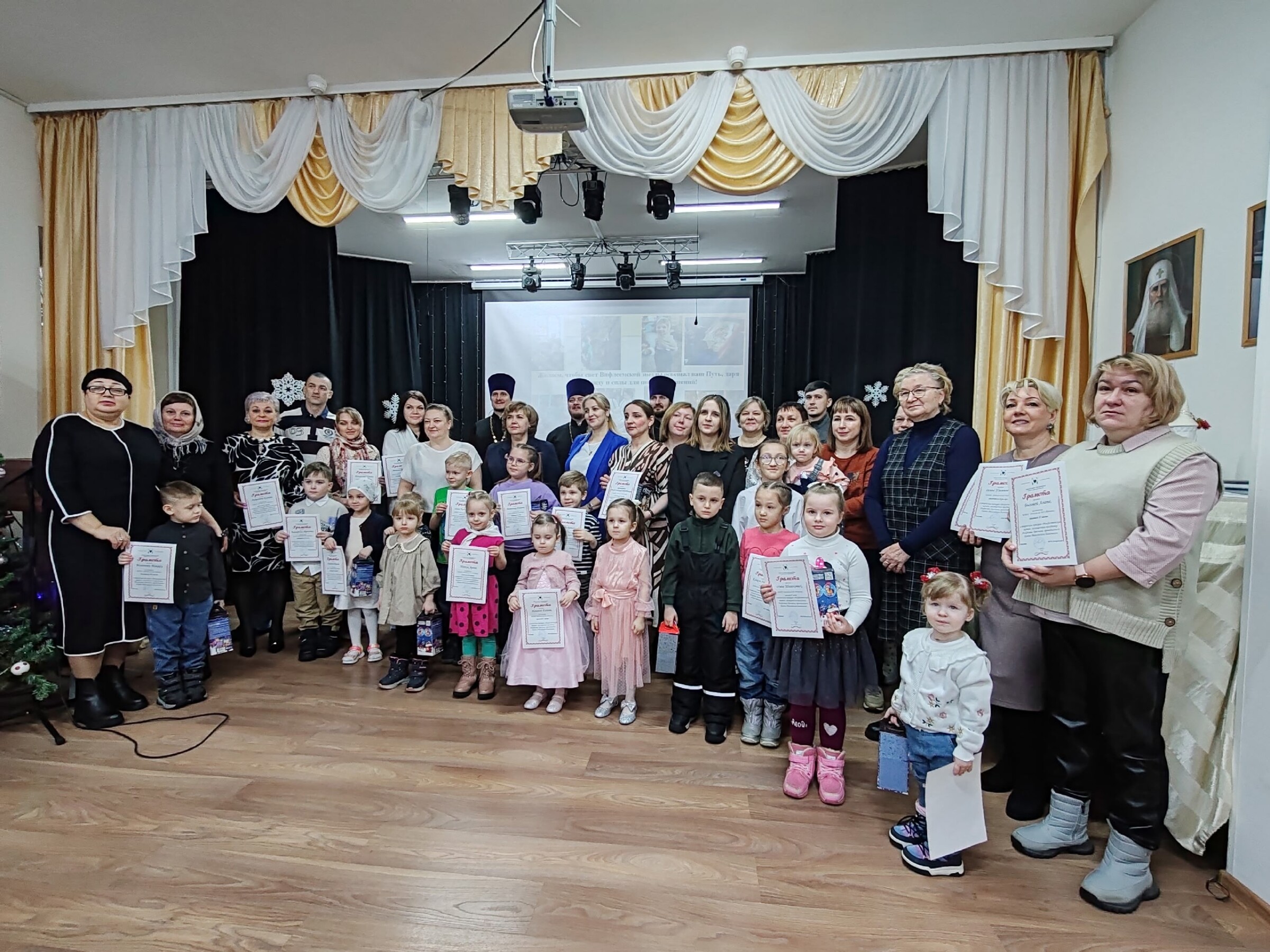 28 января в актовом зале Дома причта Храма Покрова Божией Матери г.Мегиона состоялось награждение победителей городского этапа конкурса Рождественских вертепов. 25 работ из 62 поданных на конкурс заслужили призовые места в номинациях «Лучшая индивидуальная работа», «Лучшая коллективная работа», «Лучшая семейная работа». Участников поздравили с победой и вручили дипломы директор Департамента образования города Метринская Татьяна Юрьевна, настоятель храма иерей Андрей Машлыкин, директор Центра развития образования города Сопко Людмила Геннадьевна.