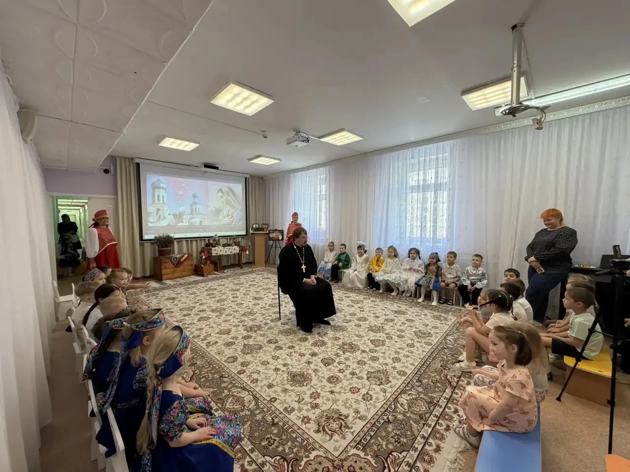 3 апреля настоятель храма Блаженной Матроны Московской иерей Евгений Ефимов посетил детский сад 56 «Северяночка».